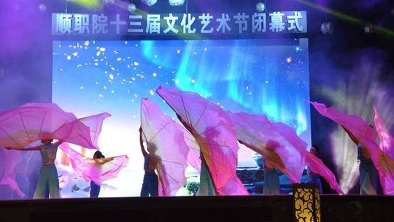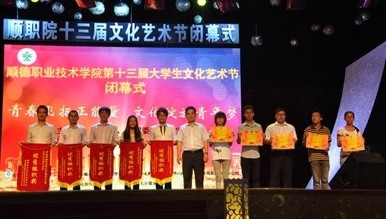 闭幕式在本届文化艺术节的视频回顾中拉开了序幕,视频回顾通过关键词“青春”、“梦想”、“正能量”“好声音”等来重温文化艺术节的各承办项目情况,然后通过数字、声音、成果等信息来反映本届文化艺术节开展的盛况与成效。紧接着刘毓副校长对本学年参加广东省各类文艺赛项获奖的同学、“青春之歌”团支部歌咏大赛最佳组织奖、本届文化艺术节“我最喜爱的文化艺术节项目”和“优秀组织奖”的获得单位和代表进行了颁奖!随后进行了文化艺术节优秀节目展演,校艺术团、舞林大会、顺职好声音、十大歌手等团体为在场观众呈现了一台精彩的文艺节目表演,节目包括演唱、民乐弹奏、葫芦丝演奏、民族舞、古典舞、相声、诗朗诵、街舞、健美操、模特走秀等。其中,相声《大学之体验》、诗朗诵《我们的中国梦》引起了现场观众一阵又一阵的掌声,现场气氛热烈