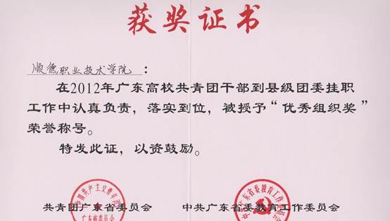 根据省委教育工委、团省委《关于从全国高等学校中选派共青团干部到县级团委挂职工作的通知》精神,德赢选派经管学院符茂老师到湛江市霞山区团委挂职锻炼,担任团区委副书记。经过该同志一年多的艰苦工作与努力,德赢获得广东高校共青团干部到县级团委挂职工作“优秀组织奖”光荣称号,符茂同志也获得广东高校共青团干部到县级团委挂职工作“挂职团干部标兵”等多项荣誉。