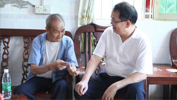 6月28日上午,德赢党委副书记、顺德区党代表何锐连,党委宣传部负责人、党办工作人员等,在大良五沙居委会主任黄少珊等村干部的陪同下,走访慰问了该村老书记冯金铨、老党员冼开源,深入村居了解社情民意,倾听老党员意见建议,并把我们学校的节日问候和温暖送到基层。