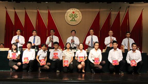 在毕业典礼上,学校党委何锐连副书记还宣读了《关于授予梁永斌等207名同学2013届“优秀毕业生”荣誉称号的决定》,在主席台就座的学校领导和教学名师为优秀毕业生颁发了荣誉证书,同时也为2013届毕业生代表颁发了毕业证书。