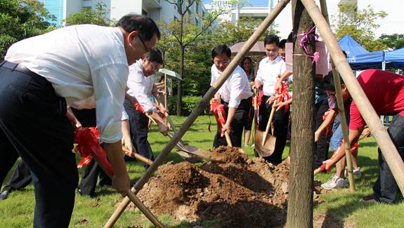 毕业典礼在美好的歌声《明天会更好》中落下帷幕。毕业典礼结束后,学校领导、教师代表、毕业生代表在校友林植树。