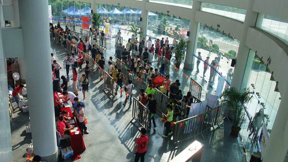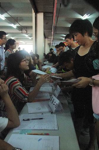 迎新第一站——在顺德大良客运汽车站的接站点,迎新工作如火如荼,到处都是志愿者忙碌的身影。每趟车一到站,新生和家长一下车,众多的志愿者马上微笑着迎上去:“你好”,“欢迎来到顺职院”,并“抢”下新生和家长手中沉重的行李,递上一瓶矿泉水。志愿者们热情周到的服务很快消除了新生们初来乍到的陌生感,一位来自经济管理学院的新生深情地说:“一下车,热心的师兄师姐就陪着我搬行李,给了我一种家的温暖。”