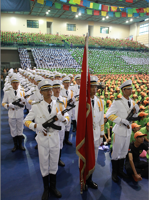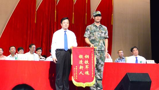 开学典礼之后进行了军训总结和表彰活动,夏校长代表学校为承训部队送上锦旗,向各位教官们为德赢新生军训工作的顺利开展所付出的辛勤劳动表示了诚挚的敬意和衷心的感谢。