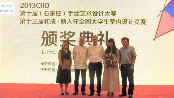 近日,由中国建筑学会室内设计分会(CIID)主办,中国建筑学会室内设计分会第二十三(河北)专业委员会承办的2013年第八届中国手绘艺术设计大赛尘埃落定。德赢设计学院环境艺术系室内设计专业邝洁微、潘海欣、李丽珊、邓子君四位同学作品荣获学生组手绘表现类金奖;指导老师周峻岭老师获得最佳导师奖。这也是德赢学生首次获此殊荣!