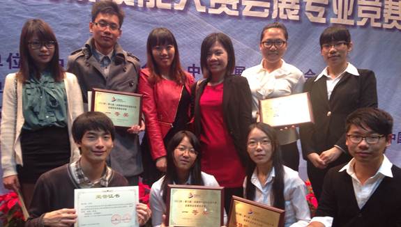 第七届全国商科院校技能大赛于2013年12月6日-12月8日隆重举行,汇集全国18个省(包括港澳台地区),包括华南师范大学、上海师范大学、北京联合大学、广州大学、天津商业大学等68所本专科院校,160多支队伍近600多名参赛选手参加,大赛设置了会展项目策划组、会展创意设计组、会展项目调研组和教师组,规模超越前六届。经过激烈的角逐,我院会展专业代表队在比赛中脱颖而出,其中会展策划与管理专业11级张晓君、郭莹、林燕玲同学所组成的队伍(参赛作品《The Angle——角》)和梁嘉琪、陈映如同学所组成的队伍(参赛作品《眼》),在李小婧老师和郭晓慧老师的指导下,分别获得会展创意设计组的一等奖和二等奖;会展11级陈焕璋、简文坚、伍燕萍同学在关晓华老师指导的会展策划案《2014首届中国(深圳)手机科技应用展览会项目策划》获得会展策划类一等奖,并在颁奖典礼中作为唯一的优秀作品代表会展项目策划高职类别78支参赛队伍作汇报演示,这支参赛队伍得到了实习单位佛山市红鑫海岸广告有限公司在训练时间、专业指导和参赛经费上的大力支持。