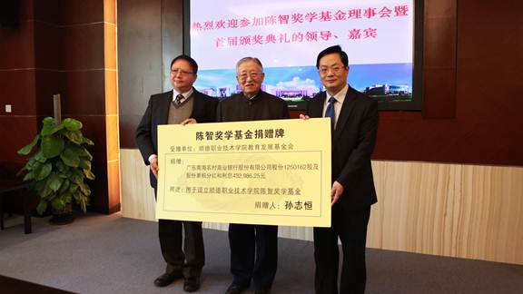 “陈智奖学基金”首批基金是由孙志恒先生捐赠的广东南海农村商业银行股份有限公司的1,250,162股股份和累积分红432,986.25元,为做大做好该基金,发挥其长远可持续的激励教育作用,今后社会热心人士、企业界均可捐赠资金给本奖学基金。