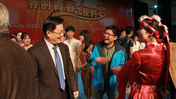 12月26日晚,德赢2013人文素质教育特长生班文艺汇演之“我的青春我的梦”在梁銶琚堂隆重举行。学校领导对校园文化建设及特长生教育高度重视,德赢校长夏伟、名誉校长陈智、党委副书记刘毓、齐振彪亲临现场观看晚会。