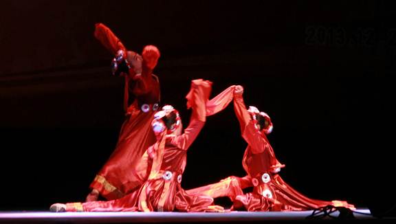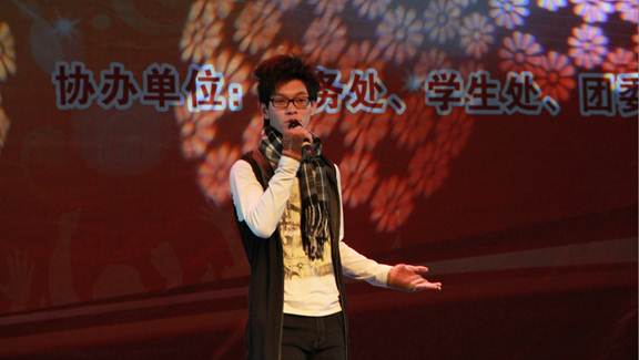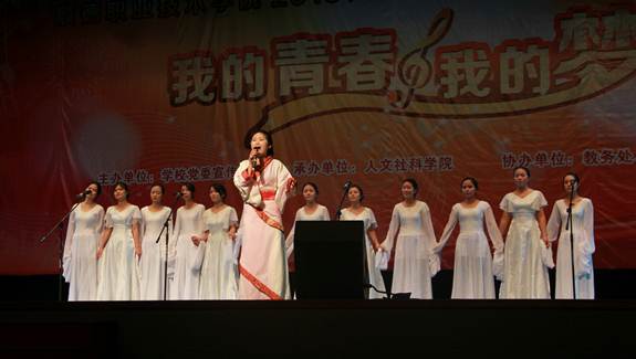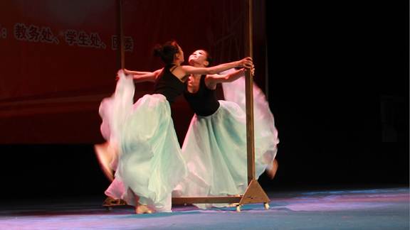 一曲管乐合奏《欢迎进行曲》拉开了演出的序幕,接下来的节目异彩纷呈:歌唱类节目有男声独唱《新贵妃醉酒》、女声独唱《祖国之恋》、男女对唱《只要有你》、女声小组唱《万水千山总是情》、男女二重唱《梦田》等,引导同学们从不同的角度去感受歌唱的魅力;话剧《茶馆》片断,演绎著名剧作家老舍先生的名作,以人物形象栩栩如生的再创造,叩动了观众的心弦;钢琴名曲联奏《星空》、《月光》和萨克斯独奏《你找到了我这样的朋友》,让大家感受到器乐的悠扬之美;宋代词人陆游《钗头凤》的诵唱,再现当年一段刻骨铭心的爱情故事。此次演出,舞蹈是一大亮点,藏族舞《心声》轻快而深情,现代舞《嗨!颂颂飒》彰显青春学子的洒脱个性与激情活力。