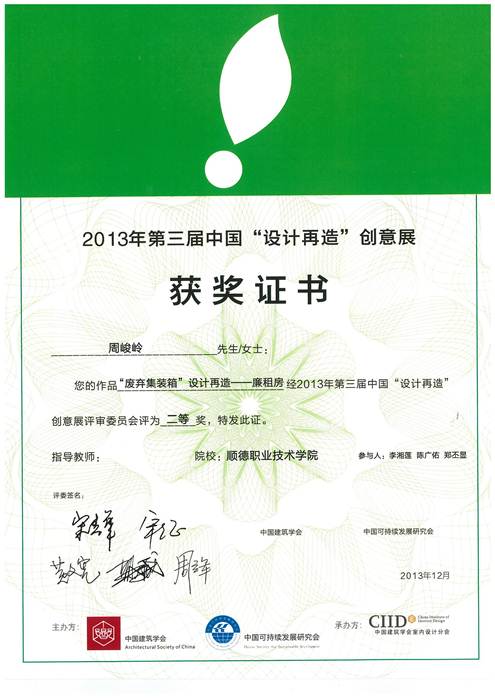 11月4日,中国第三届“设计再造”创意展落下帷幕。德赢设计学院周峻岭老师的作品《“废弃集装箱”设计再造——廉租房》获得二等奖。