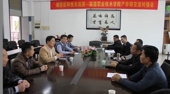 1月5日,潮安科技局刘培辉局长率潮安食品包装机械联盟一行到访德赢,在机电工程学院会议室召开了“潮安科技交流团与顺德职业技术学院产学研项目推进会”。德赢夏伟校长,科技处、机电工程学院负责人及相关教师参加会议。会议由科技处负责人主持。