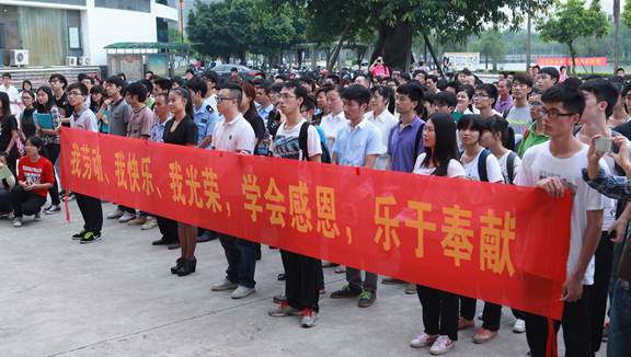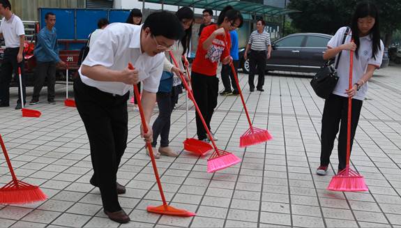 随着夏伟校长宣布“快乐劳动,学会感恩”校园义务劳动开始,在场的校领导、中层干部、老师、同学们纷纷拿起扫把等劳动工具劳作起来。此次活动组织了近3000人次参加了校园义务劳动,通过在校园内营造“我劳动、我快乐、我光荣”的良好氛围,加强社会主义核心价值观教育,立德树人,积极探索实践爱学习、爱劳动、爱祖国活动的教育形式和载体,切实增强了学生的劳动意识、实践能力与社会责任意识,有助于学生更好地投入到学校的学习和生活中去。