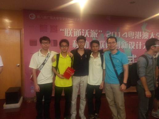 6月20日,第八届广东省大学生科技节之2014粤港澳大学生移动互联网创新设计大赛决赛在暨南大学隆重举行。由德赢电信学院教师杨小东、余志鹏指导, 唐高坚和谭钧朗(电气自动化专业),张盛鸿和梁启健(软件技术专业)等4位学生共同设计的作品《蓝牙红外线温度计》在众多作品中脱颖而出,荣获一等奖。