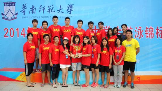 2014年广东省大学生游泳锦标赛于6月20日至22日在华南师范大学举行。德赢游泳队经过顽强拼搏,获得了丙组团体第一名的优异成绩。