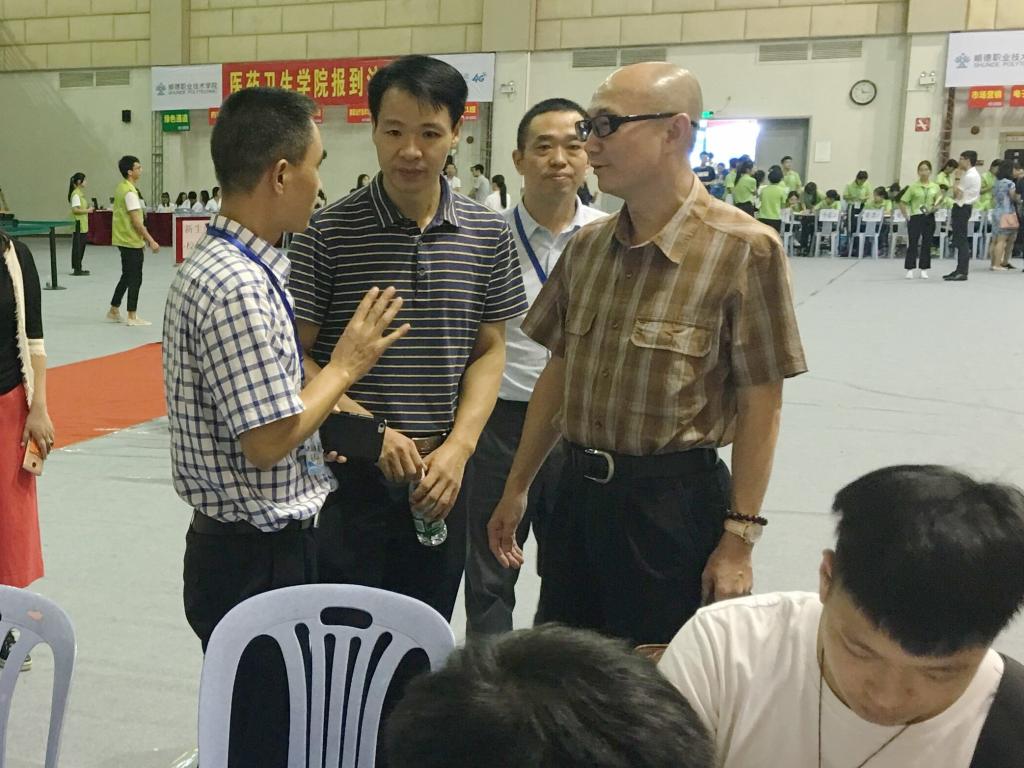 学校纪委书记谭谦章(右一)到迎新现场看望师生