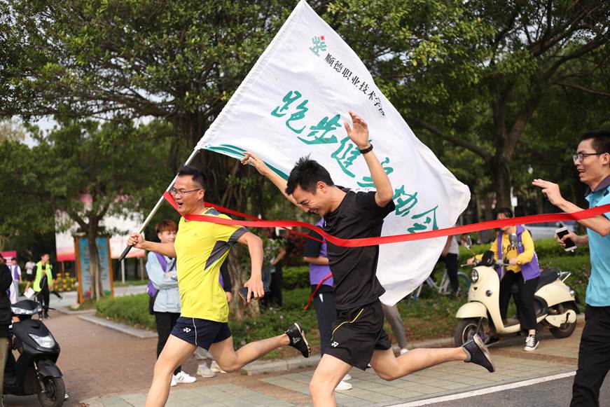 随后,学校副校长陈粟宋在体育节开幕声中鸣笛发令,师生春季环湖长跑活动也正式拉开,2500多名师生伴随着轻快音乐环着美丽的碧桂园湖跑动起来。长跑路线由梁銶琚礼堂前开始,环湖经过智慧门到图书馆,最后冲刺回到礼堂。一路上,师生们一起奔跑,一起欢呼,形成了一道跃动的环湖风景线,见证了一路奔跑的顺职师生们。
