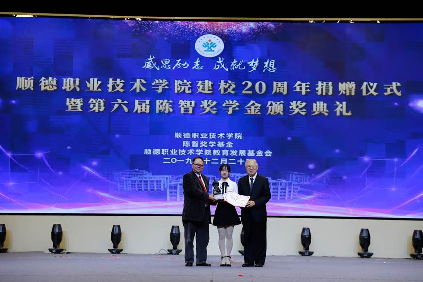 理事会后,在梁銶琚堂举行了颁奖典礼。夏伟校长代表学校向获得陈智奖学金的同学们表示热烈的祝贺,向一直以来关心和支持学校建设发展的各位捐赠人、校董、企业家和嘉宾表示衷心的感谢和崇高的敬意。并呼吁,在学校发展进入了“双高”计划的快车道之际,要以“双高”计划建设为契机,以陈智奖学基金“追求卓越,奖励精英,崇尚匠心,成就梦想”为要求,感恩企业家和社会各界的关爱帮助,铭记“厚乎德行、辩乎言谈、博乎道术”的校训,不负众望,奋发有为,为成就自己的梦想而砥砺前行。