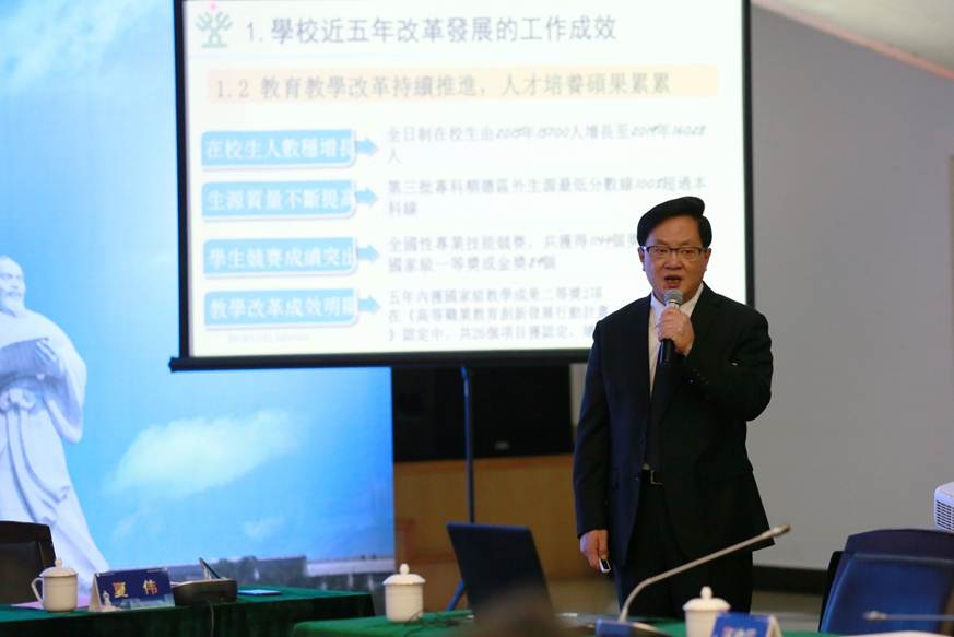 会上,学校校长夏伟代表学校对各位领导、董事、嘉宾的盛情光临表示热烈的欢迎与衷心的感谢,并汇报学校近五年改革发展的工作成效和未来几年的工作计划。他表示,当前“职教20条”吹响了高职教育发展的新号角,职教本科试点拓展了高职教育发展新空间,粤港澳大湾区建设提供了学校发展的新契机,学校党政班子将把握好这一重大发展机遇,团结带领全校师生,携手同行,不舍昼夜,奋力共筑顺德百年大学梦想,早日实现中国特色、世界水平技术大学的伟大目标!