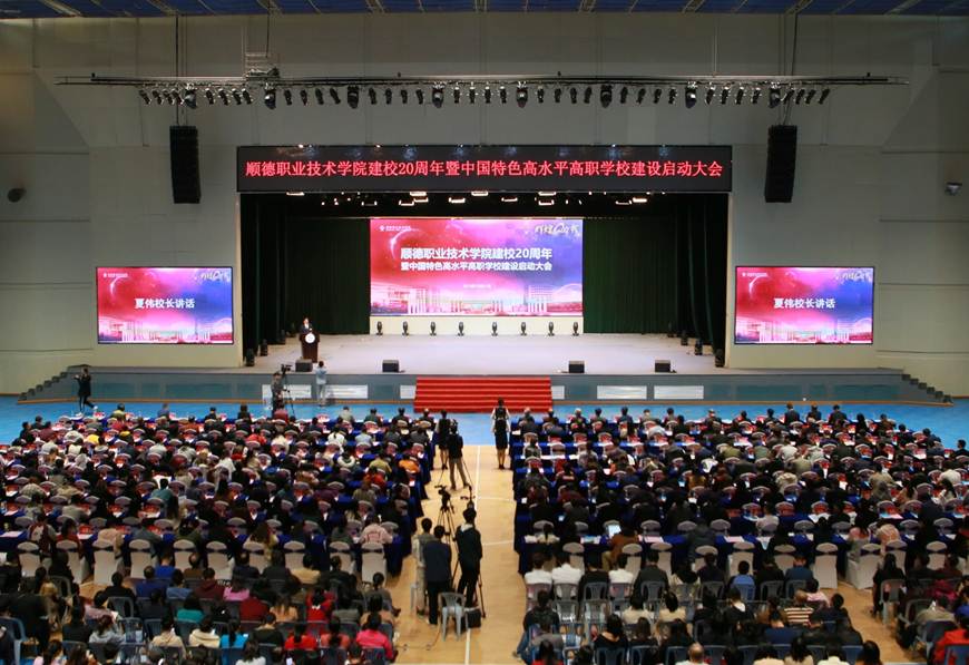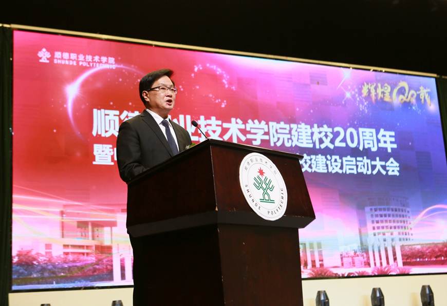 在建校20周年之际,德赢入选中国特色高水平高职学校建设单位。12月21日下午,学校建校20周年暨中国特色高水平高职学校建设启动大会在梁銶琚堂隆重召开。广东省人大常委会原副主任、学校原党委书记陈用志,清华大学原常务副校长杨家庆,佛山市委副书记、顺德区委书记、学校党委书记郭文海,佛山市人大常委会原副主任冯润胜,原顺德市政协主席招汝基,学校名誉院长陈智,顺德区副区长蔡伟,区政协副主席徐国元,顺德区政府相关部门代表,企业界代表,校友代表,学校现任以及退休党政班子成员,全校教职工及学生代表等近3000人参加了大会。大会由学校党委副书记、副校长刘毓主持。