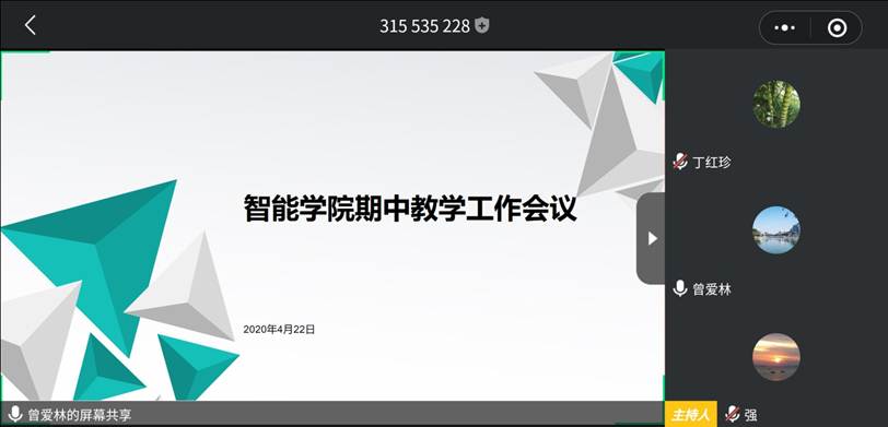 4月22日,智能制造学院组织全体教职工在线上召开了“智能学院期中教学工作会议”,会议传达了学校关于做好近期教学工作和毕业生后期工作的重要精神,同时,结合当前网络教学现状和毕业生后期工作,学院对相关工作做了详细的部署。