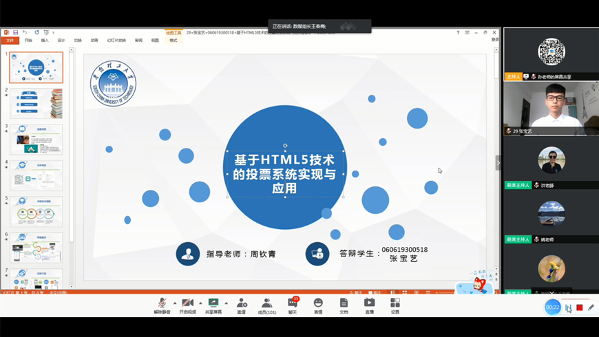 华南理工大学继续教育学院蒋华副主任、教学管理李先军老师、答辩委员会组长王春梅副教授、答辩委员会袁新生副教授、周钦青副教授、骆军卫讲师、陆浩讲师,德赢专升本自考办相关老师以及数字媒体艺术专业79名学生参加了本次答辩会,答辩会使用“腾讯会议”平台在线进行。