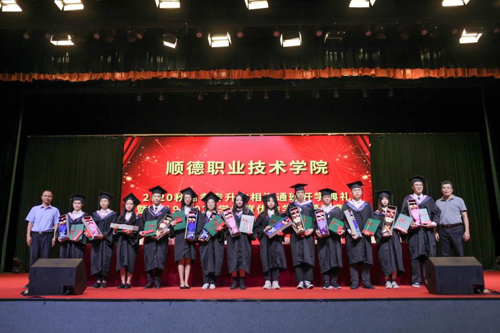 典礼上,继续教育负责人宣读了《关于表彰2019-2020学年度顺德职业技术学院自学考试专升本相沟通班奖学金获得者的决定》和《关于表彰2019-2020学年度顺德职业技术学院自学考试专升本相沟通班优秀学生干部的决定》,希望同学们再接再厉,脚踏实地再创佳绩、再造辉煌!于国东院长与廖荣盛书记分别为优秀学生、优秀学生干部颁发荣誉证书及奖学金。