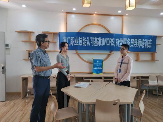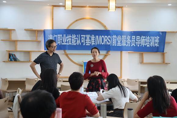 澳门职业技能认可基准(Macao Occupational Skills Recognition System- MORS)﹝以下简称MORS﹞是一项由澳门旅游学院于2001年在欧盟专家协助下开发的职业技能认证制度,其主要目的是透过引入一系列工种的认可制度,提升澳门旅游业人力资源的质素。据介绍,此次培训的具体授课内容为前堂服务员培训,由澳门旅游学院资深职业技能认可基准及酒店课程主任麦锡光先生进行授课,课程涉及初阶专业人员及督导师的两大职业技能等级,采用“澳门职业技能认可基准(MORS)”作为培训及评核体系,兼具理论培训和实训。