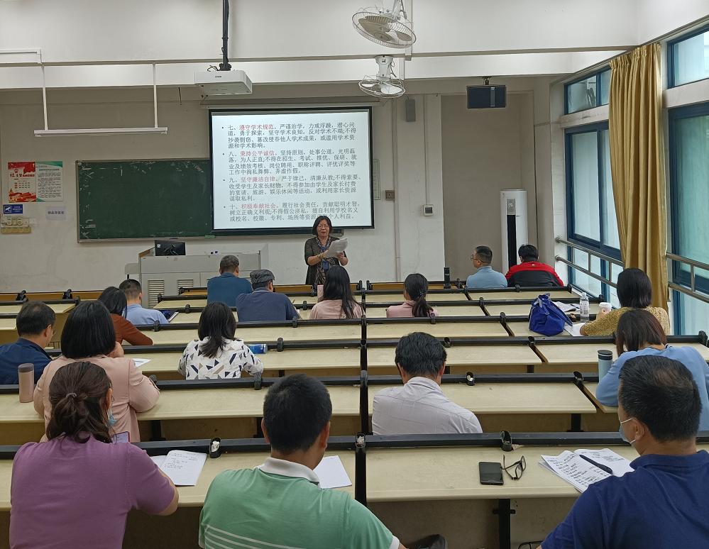 会上,刘红传达了学校印发的关于《顺德职业技术学院师德师风专项整治工作方案》,重点说明了新时代高校教师职业行为“十项准则”,严厉整治违反职业道德行为。并提出了三点要求:一是要提高认识,统一思想,充分认识加强师德师风建设的重要性;二是要深入剖析,认真反思,充分认识师德师风建设中存在的问题;三是师德师风建设常态化,公布监督反映方式和办法,营造风清气正的教育生态。最后强调希望广大教职工通过此次师德师风教育大会加强和改进新时代师德师风建设,将师德师风建设贯穿教师生涯全过程,形成整治长效机制,为学校“双高”建设、“升本”工作提供政治保障。