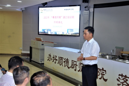 刘毓对学员们表示热烈欢迎。他说,为深入贯彻落实省委、省政府实施“粤菜师傅”工程的战略部署,德赢于2018年成立顺德厨师学院,目前已培训“粤菜师傅”6000余人,以实际行动助力精准扶贫和乡村振兴。他希望学员在校学习期间能够按照防疫要求做好个人防护,遵守学校纪律,认真上好每节课,学到真本领,不辜负学校、家庭、社会各界的期望。刘毓表示,学校将尽全力为学员提供最好的服务,帮助大家尽快适应环境,全身心投入到学习中来。