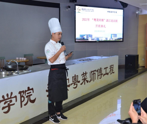 5月12日,顺德厨师学院2021年“粤菜师傅”湛江培训班开班,学校党委副书记刘毓、德赢派驻雷州市纪家镇上郎村第一书记兼扶贫工作队队长龚东超出席开班仪式。