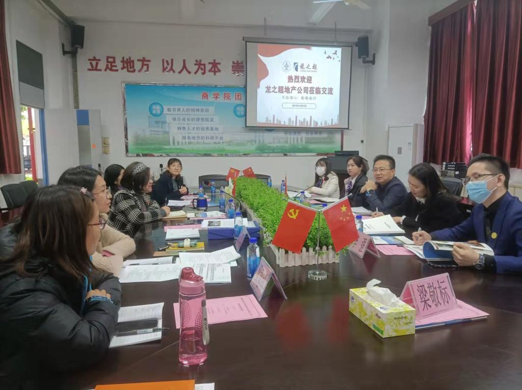 11月23日,广东龙之超集团总裁助理兼龙之超地产总经理胡洋一行来到学校商学院开展交流。校友会基金会办公室主任董国顺、商学院党总支书记刘红,以及商学院党总支宣传委员、商学院电商营销专业党支部书记、商学院党政办、商学院学生支部书记等参加活动。