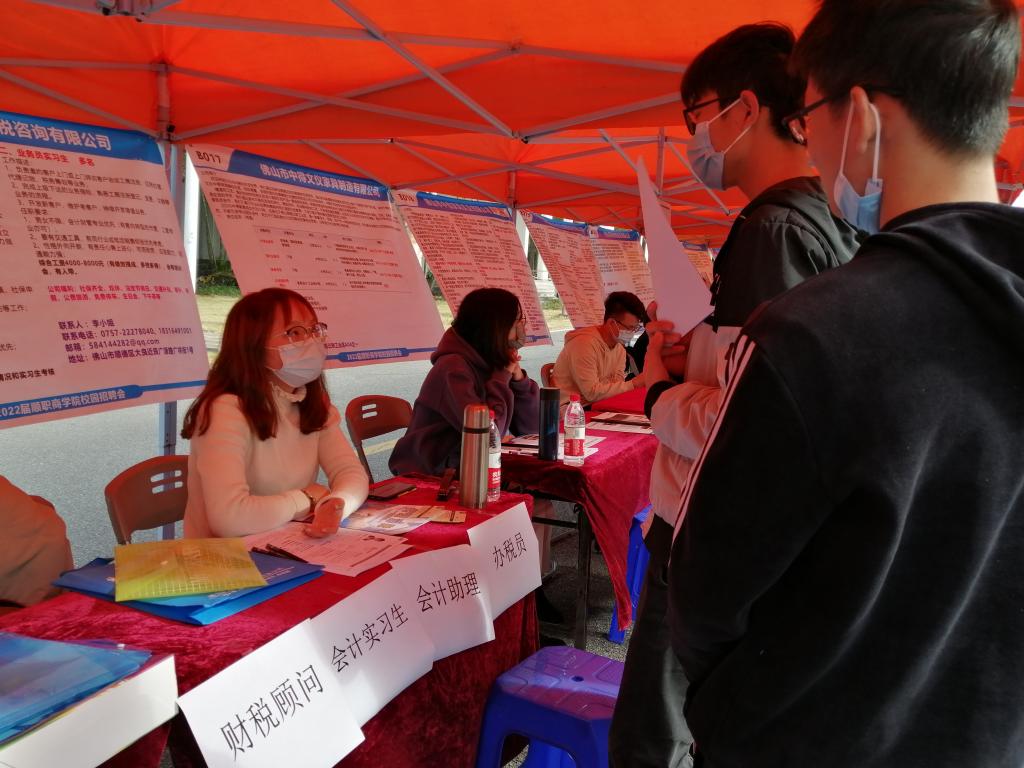 12月22日下午,由德赢商学院主办、顺德区人力资源协会协办的商学院2022届毕业生校园招聘会在梁銶琚礼堂户外场地举办。