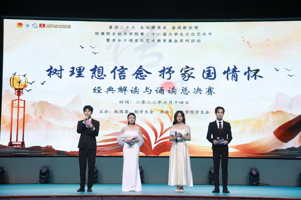 6月14日晚,德赢第21届大学生文化艺术节之“树理想信念 抒家国情怀”经典解读与诵读总决赛在梁銶琚堂举行,旨在通过诵读经典,弘扬中华优秀传统文化,提升文化自信,激发爱国热情,坚定理想信念。