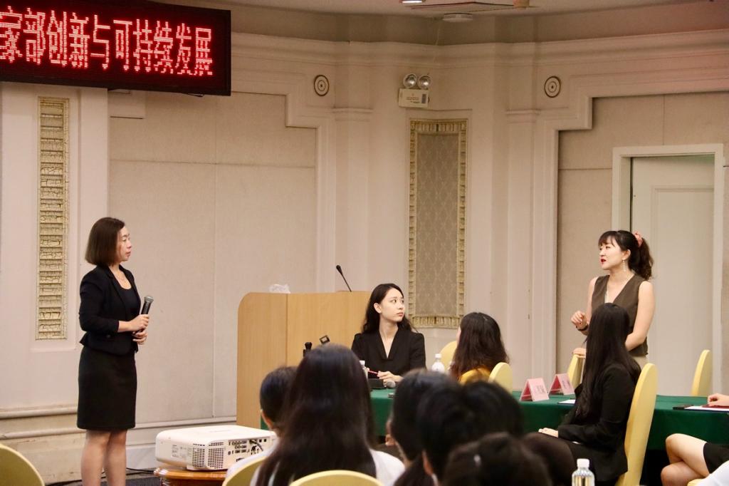 讲座开始,黎嘉媛由“大家印象中的房务员”的互动问题引出讲座主题,从“减少员工体力劳动”“增加效率”“增加客人满意度”“保护环境”等四个方面阐述酒店管家部要进行创新的原因。她表示,新濠集团旗下的酒店均以电动清洁车代替传统清洁车,并启用了床升降器和电动升降运水车,大大减少了房务员的体力劳动。黎嘉媛认为,酒店应从排房、遗留物、工程单的系统运用与生产力方面增加效率,要减少一次性布置,主攻客人体验,提供个性化服务,创造可重复使用物品。她还分享了新濠集团旗下酒店24小时空气净化杀菌的新常态程序,提出酒店管家部不仅要进行创新,更要坚持可持续发展道路。