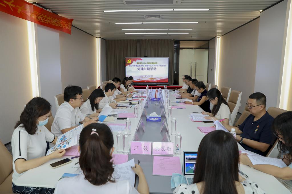 9月21日,顺德区税务局党委委员、副局长何柳率顺德区税务局办公室党支部、机关党委党支部、组织人事股党支部成员一行来到德赢,与商学院党总支共同举办“喜迎党的二十大,税校共建创未来”主题基层党组织结对共建活动。活动在广东-亚琛工业4.0应用研究中心举行,学校党委委员、副校长杨小东,商学院党总支书记陈曦及总支委员参加。