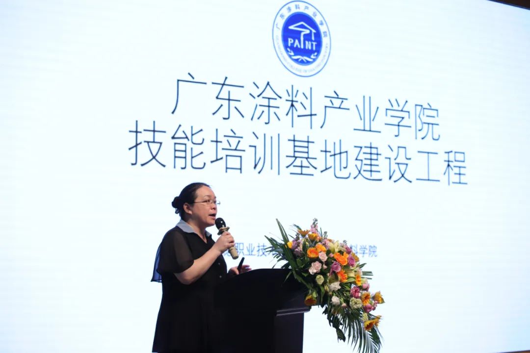 陈燕舞在广东涂料产业学院技能培训基地建设工程发布仪式上致辞,发布了建设广东涂料产业学院技能培训基地建设工程的消息,介绍了广东涂料产业学院人才培养基地建设方案。她表示,广东涂料产业学院成立以来,一直在尝试和摸索扩大产业工人培训规模,系统提高教学和培养质量,努力克服疫情影响,积极联络培养人才的事宜。她指出,培训基地成立后将面向全行业、全社会提供职业技能培训服务,实现“一对多”教学,教育体系将更加完善,有系统的知识学习及考核制度,有国家人社局认可的技能资格认证体系,将不断为行业输出标准化优秀人才。陈燕舞表示,三分涂料,七分施工,艺术涂料尤其如此。手艺需要传承,培养一个优秀的艺术涂料施工者,通常需要花费好几年时间。各厂商都紧缺优秀的工匠、涂装师,这是行业的普遍痛点。顺职院轻化与材料学院一直秉承“弘扬工匠精神 践行育训研用”的理念,大力推动广东涂料产业学院发展,将发挥高校教育培训优势,为艺术涂料技能培训作出应有贡献。