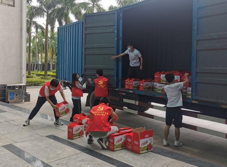 11月21日上午,10000余斤红心火龙果、5000余斤富硒丝苗米等来自德赢结对帮扶的云浮市东成镇云河村的特色农产品,由3辆卡车运到学校,送到了广大教职员工手中。这是学校组织人事处和工会开展的消费帮扶助力乡村振兴系列活动之一,籍此表达学校对教职员工的关爱之情,感谢大家对学校发展的辛勤付出。