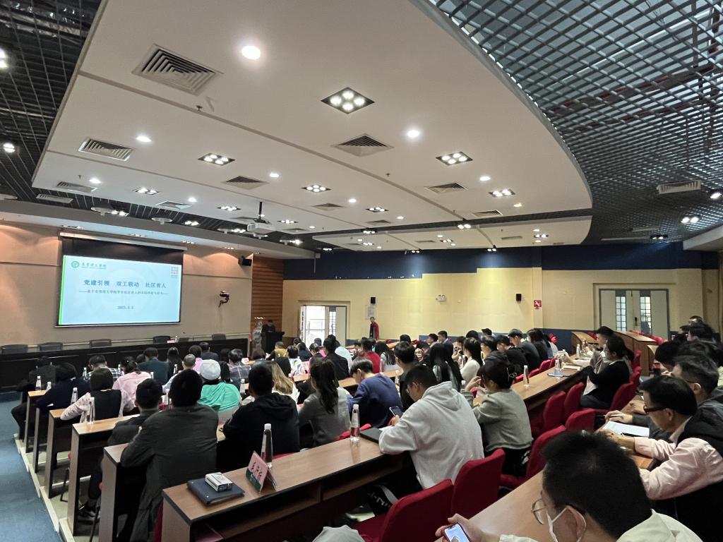 会议邀请东莞理工学院党委学生工作部部长、党委研究生工作部部长、学生处处长、学生社区知行学院党总支书记黄金和作题为“党建引领、双工联动、社区育人”的专题经验分享报告。黄金和从落实立德树人根本任务、提高思想政治教育工作的针对性亲和力有效性的要求出发,突出目标导向、问题导向、系统思维,介绍了东莞理工学院在贯彻“三全育人”理念,引入社会工作理念、方法和专职社工队伍,打造“10+2”综合育人体系架构,探索“六化驱动”实践机制等方面的工作经验,就健全学生社区管理制度体系,强化社区党建引领、推广社区知行课程、提供“家门口”的心理服务、开展学风综合建设、强化社区文化建设等工作进行了介绍。