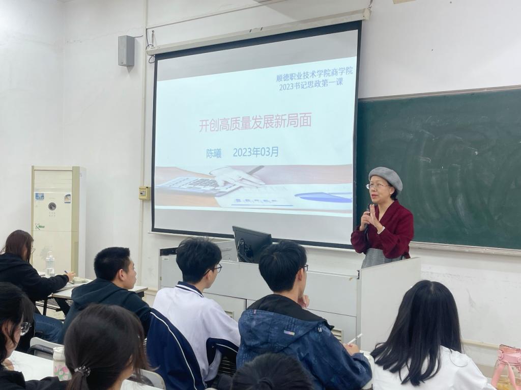 陈曦以《开创高质量发展新局面》为题,推进学习宣传贯彻党的二十大精神走深走实,结合专业特色,引导青年大学生积极融入时代大潮,在推进高质量发展中贡献青春力量。她指出,大学是同学们的青春梦工厂,要敢于有梦,勤于追梦,勇于圆梦,在校期间除了要夯实专业基础外,还要多参与学生组织和课外实践活动,到企业实习,做好自己的职业生涯规划。