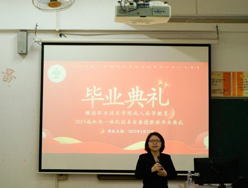 阳春三月,草长莺飞。在校企双方共同努力下,德赢与佛山市顺德区金泰德胜电机有限公司合作办学结出新的硕果。3月12日上午,校企合作送教上门2023届机电一体化技术金泰德胜大专班毕业典礼在德赢1号教学楼206室举行。
