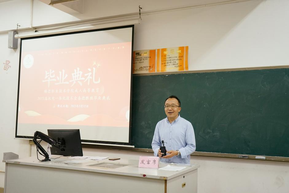 王建平代表公司向圆满完成学业的毕业生表示衷心祝贺,希望毕业生敢为人先,保持创新创优的激情,秉持团队协作、努力拼搏、认真工作、不断学习的态度在企业中继续发光发亮,贯彻终身学习理念,在学习中成长。“企业发展进步离不开人才,企业的战略实施更离不开人才。”王建平表示,在企业转型发展的关键时期,顺职院与金泰德胜合作举办学历提升班,全面开启“送教上门”校企联合办学新模式,为金泰德胜集团搭建人才队伍建设向上通道,给有晋升学历意愿的员工创造了便利条件,极大缓解了工学矛盾,使员工可以在“家门口”接受到深入系统的理论培训。