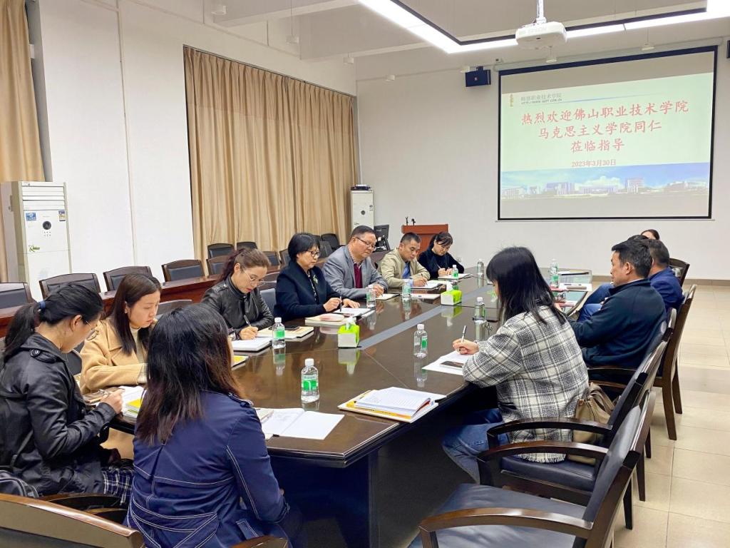 3月30日下午,佛山职业技术学院马克思主义学院党总支书记吕健斌、院长陈艳、副院长徐勇志一行9人来到德赢马克思主义学院,围绕党建与业务深度融合、教学成果培育、教学创新团队建设、心理健康教育等工作开展调研交流。德赢马克思主义学院院长王志雄,副院长董同彬、肖薇薇及教师代表参加活动。
