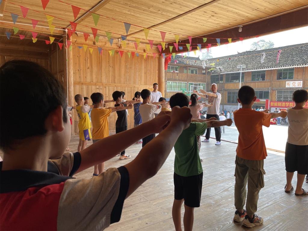 为深入学习贯彻习近平总书记在庆祝中国共产主义青年团成立100周年大会上的重要讲话精神和广东省第十三次党代会精神,2022年8月初,智能制造学院“培根铸魂”实践团前往贵州省黔东南苗族侗族自治州黎平县平架侗寨,参与“湾区青年共融,佛黔文化互通”2022年佛港澳青年“三下乡”社会实践活动,将醒狮、咏春拳等佛山特色非遗文化,以及机器人文化等带进平架侗寨。