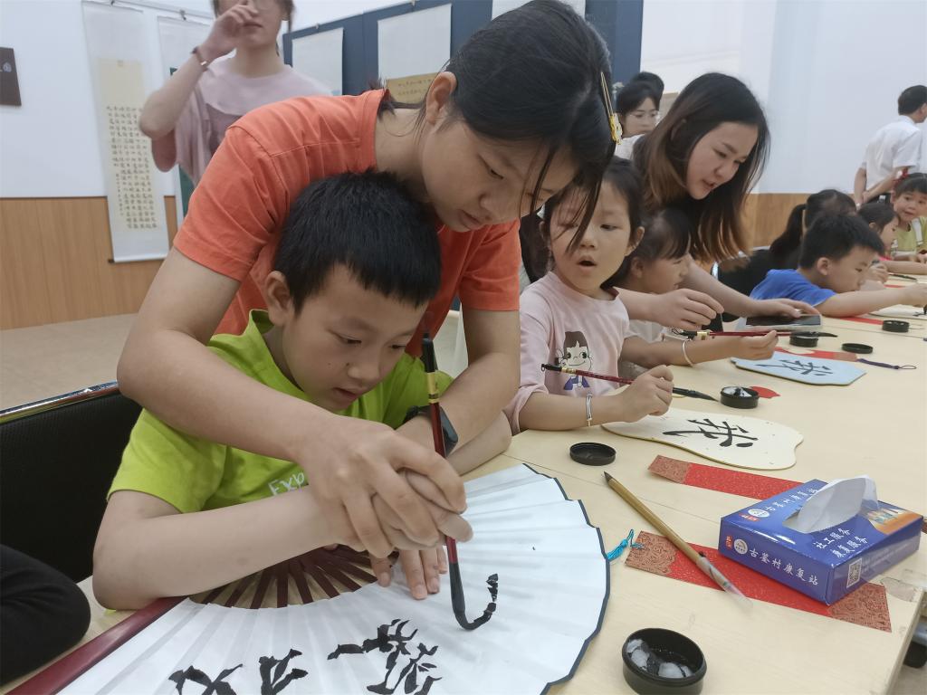为让辖区青少年在翰墨书香中感受书法的魅力,增进对书法的了解,现场设置了教学指导环节,德赢师生指导当地少年儿童练习书法。孩子们认真听讲,一笔一划地在纸上临摹练习,在老师手把手指导下,在折扇、团扇、书签上题字。孩子们捧着自己的书法纪念品笑开了花,纷纷表示书法很有趣,希望能继续深入学习。