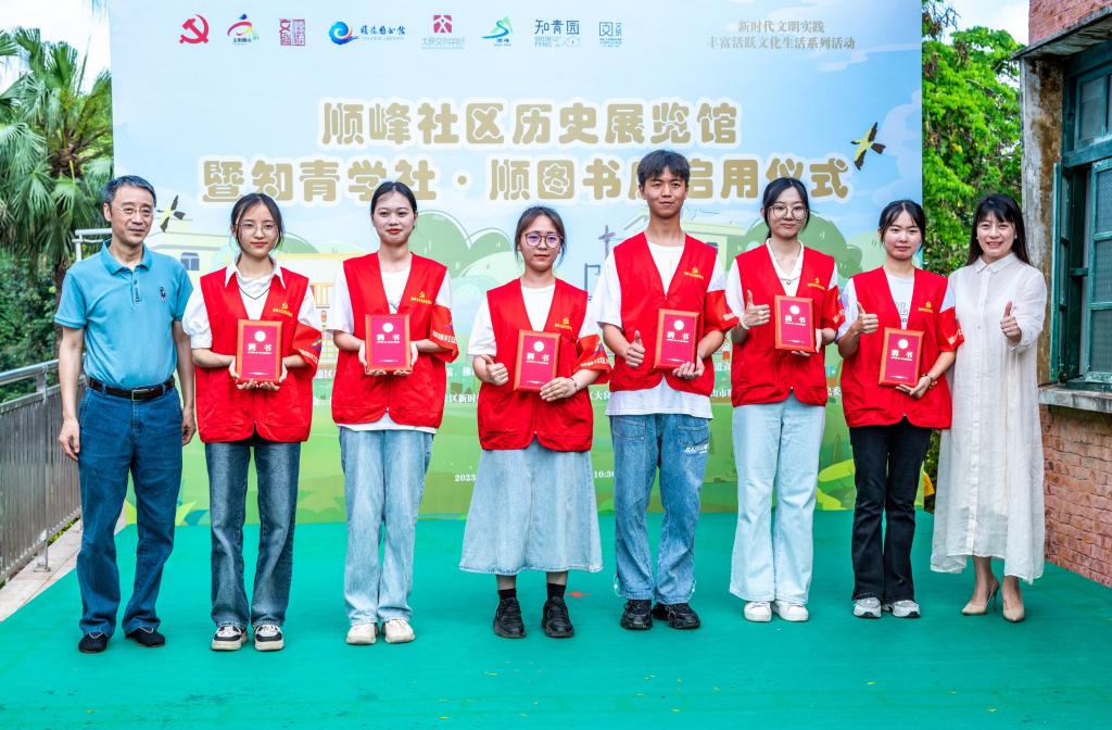 5月28日上午,顺峰社区历史展览馆暨知青学社·顺图书房启用仪式在顺峰社区知青园举行。德赢酒店与旅游管理学院“顺小旅”志愿服务队导赏员受邀参与活动,受领顺峰社区导赏员聘书和袖章,并为领导嘉宾介绍顺峰社区历史展览馆和知青学社,讲述顺峰山下的知青奋斗故事和顺峰人敢想、敢闯、敢干、敢为人先的精神品质。