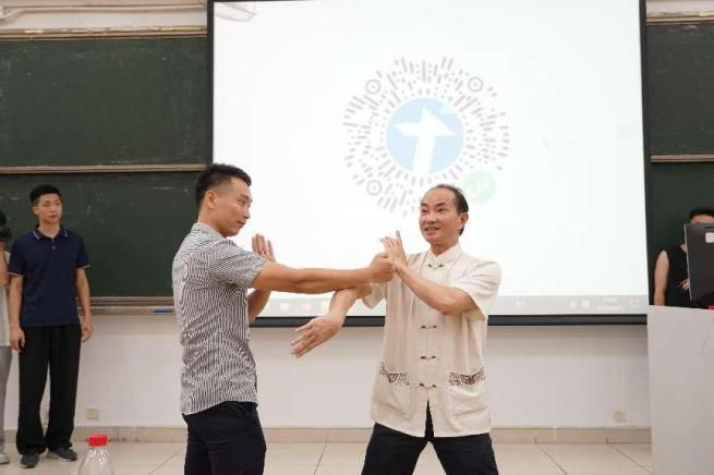 现场气氛活跃,互动交流不断。同学们纷纷表示,精忠报国始于心,尚武崇文践于行,学习永春拳不仅能强身健体,还能学习到其中蕴含的文化知识。通过此次活动对永春拳的内涵有了更深入认识,我们要大力弘扬中华优秀传统文化,增强自身体魄,为强国建设、民族复兴贡献力量。