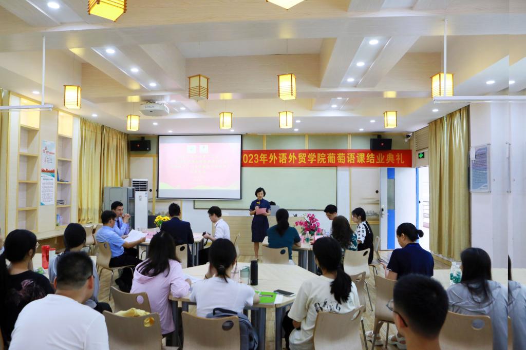 外语外贸学院负责人对葡萄牙语项目进行了总结,表示期望扩展与澳门大学的合作领域,提升合作质量与深度。外语外贸学院学生代表用中葡双语致辞,对澳门大学与德赢教师表达感谢。
