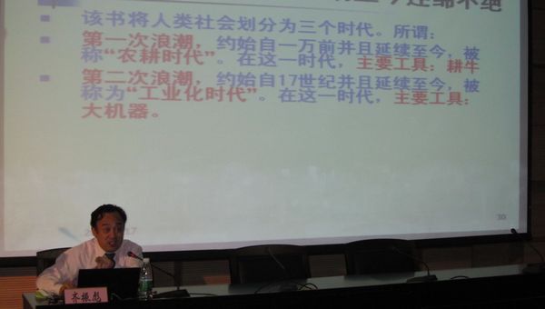 4月17日晚,经济管理学院院长齐振彪教授为同学们作了题为《未来的冲击与今天的准备》的讲座。齐教授为同学们分析了当今时代的发展特点,引导广大青年大学生要关心和学习时事政治,了解社会的发展,要努力学习科学文化知识,这样才能把握好发展机会。齐教授的讲课,生动幽默,使听课的师生受到了很好的启发。