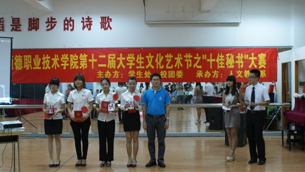 5月29日下午,由学生处、校团委主办,人文教育系学生会承办的德赢第十二届大学生文化艺术节之“十佳秘书”大赛总决赛在实训楼1栋5楼舞蹈室举行。学生处、校团委、人文教育系相关负责人和老师,以及来自各院系代表200多人参加了本次活动。