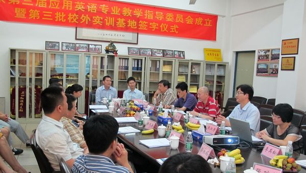 会上,专家们就应用英语专业2012级人才培养方案、教学计划、核心课程标准和校内外实训基地建设等内容进行了热烈的讨论,为外语系在人才培养以及校企合作等方面提出了宝贵的意见和建议。同时,由徐刚副校长代表学校与顺德格莱美酒店家具有限公司签订了校外实训基地建设合作协议。