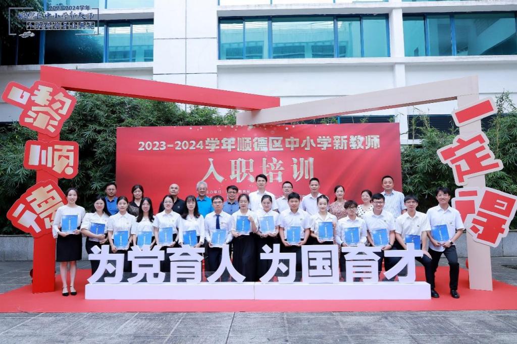 8月22日至25日,佛山市顺德区2023-2024学年中小学新教师入职培训首期集中学习在德赢顺利举行。顺德区教育局副局长刘进华,学校党委委员、副校长杨小东出席培训启动会并为新教师代表颁发入职徽章。